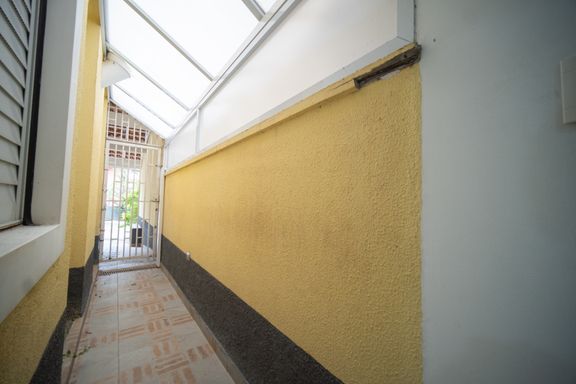 A garagem coberta comporta 2 veículos com segurança e comodidade.
