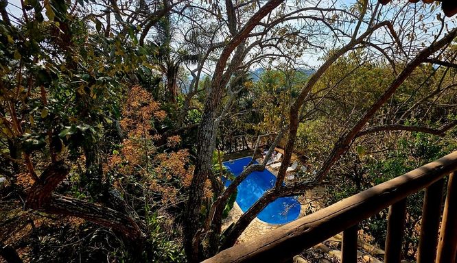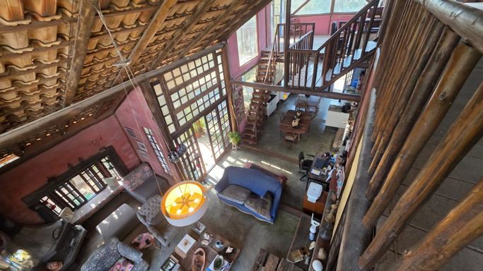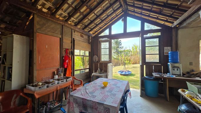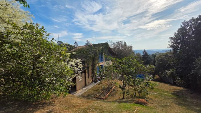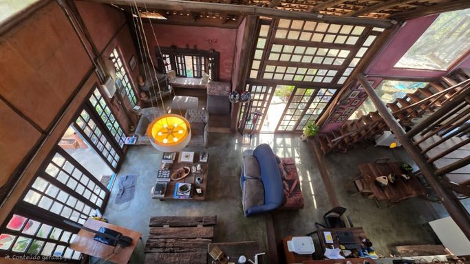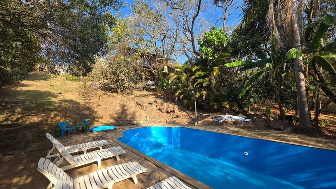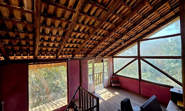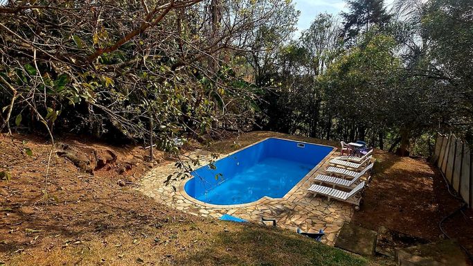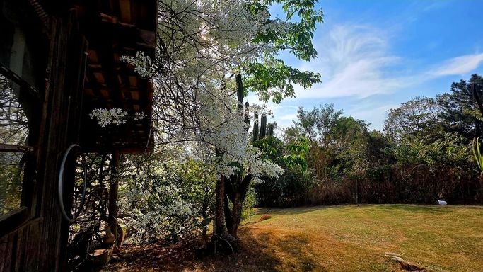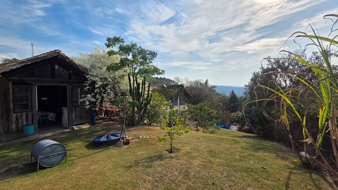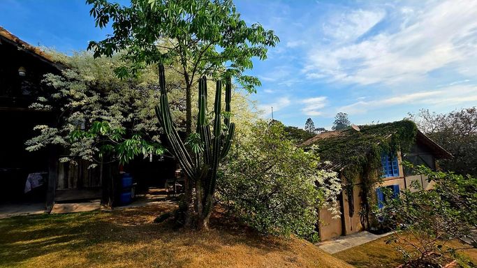 Na área externa, o jardim e o quintal formam um verdadeiro bosque particular, com árvores frutíferas, espécies nativas e ornamentais, criando um ambiente de paz e bem-estar. A piscina com prainha, deck molhado, hidromassagem e área de descanso completa o espaço de lazer, ideal para momentos de relaxamento e convivência. O imóvel ainda conta com ateliê em um platô superior do terreno, atualmente equipado como estúdio de cerâmica com forno a gás de alta temperatura, cozinha e banheiro de apoio, mas com potencial para se transformar em salão de festas, estúdio criativo, academia ou espaço multiuso. O acesso independente pela rua lateral amplia ainda mais as possibilidades de uso.