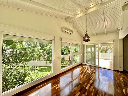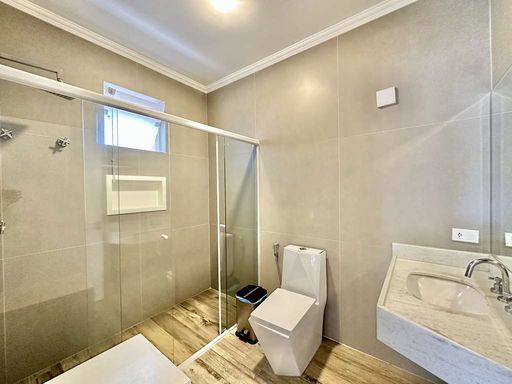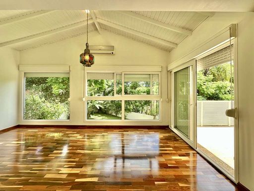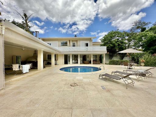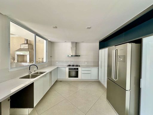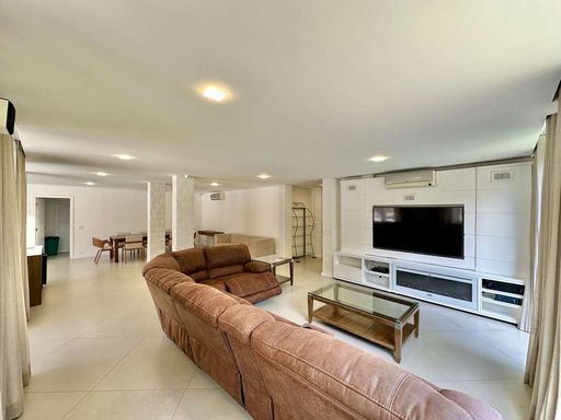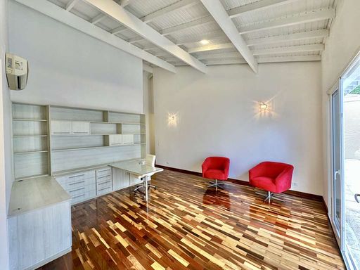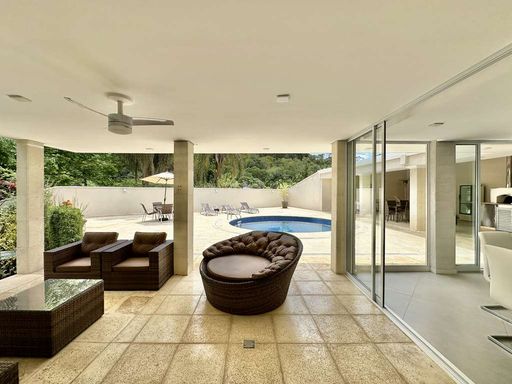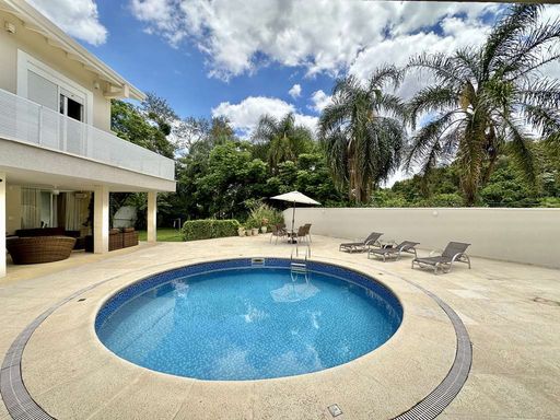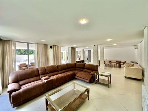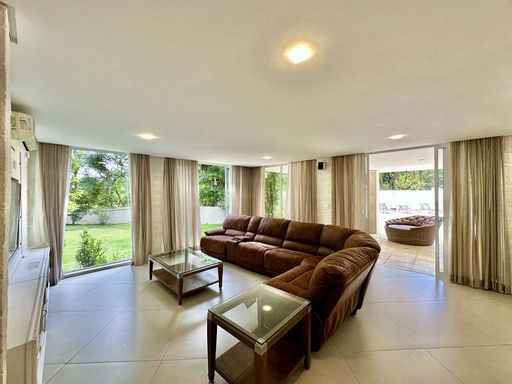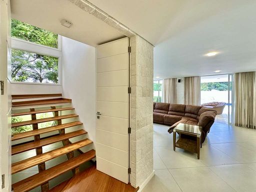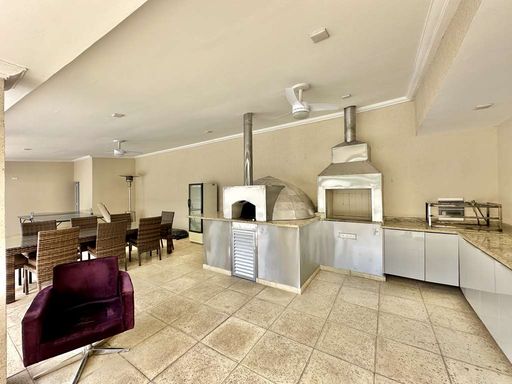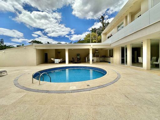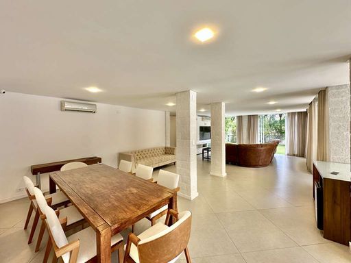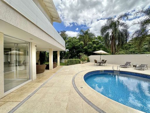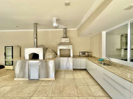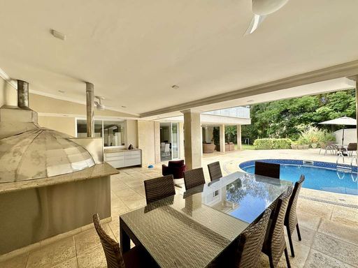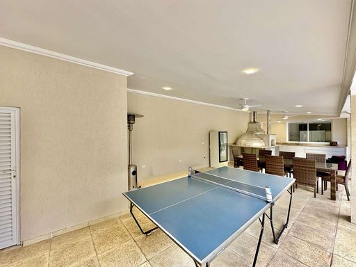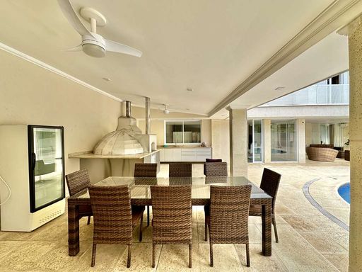 A área externa é um verdadeiro refúgio particular, com paisagismo formado, piscina aquecida, solário, quadra de beach tênis e varanda gourmet completa com churrasqueira e forno de pizza. O imóvel conta ainda com salão multiuso de 56 m², ideal para academia, estúdio, cinema ou espaço de eventos, além de vestiário, depósito e sala cofre. O sistema de aquecimento solar, as câmeras de segurança e os acabamentos de alto padrão reforçam o cuidado com conforto, eficiência e segurança.