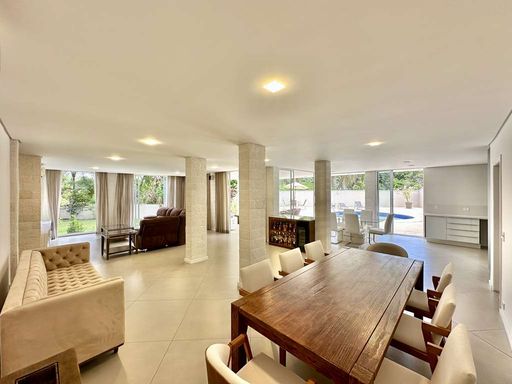 Com arquitetura envidraçada, pé-direito alto e excelente orientação solar, os ambientes são amplos, bem iluminados e naturalmente ventilados. O living integra seis ambientes harmoniosos, incluindo salas de estar, TV, lareira a gás, jantar, almoço e cozinha, todos voltados para a área de lazer. A cozinha, totalmente planejada, possui acabamentos em quartzo, eletrodomésticos de alto padrão e integração direta com a varanda gourmet, ideal para receber amigos e familiares.