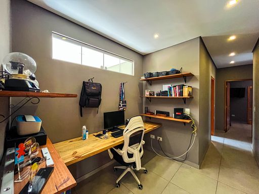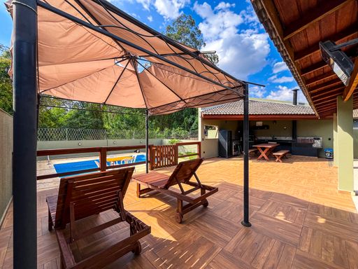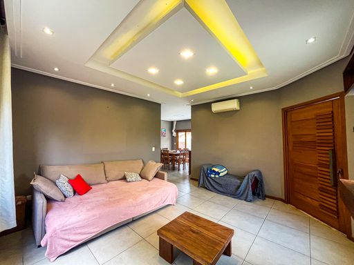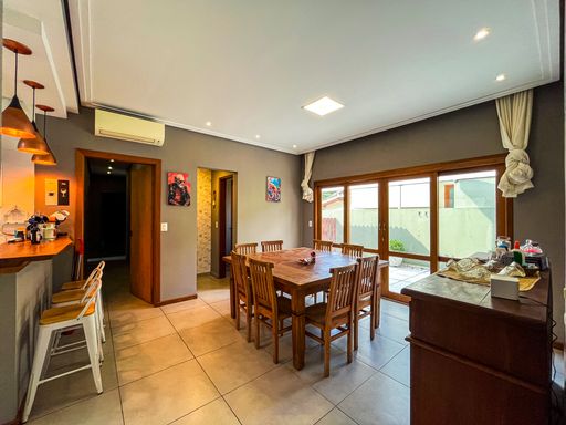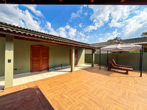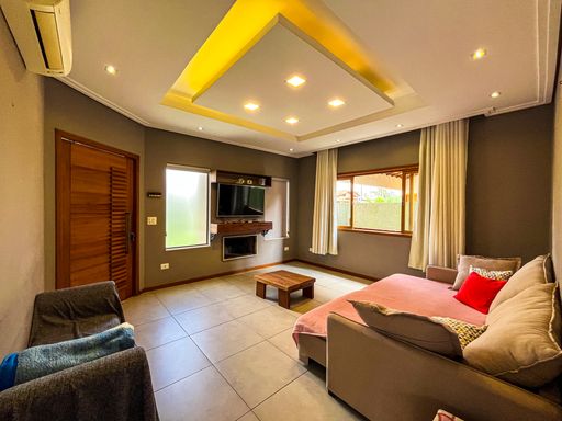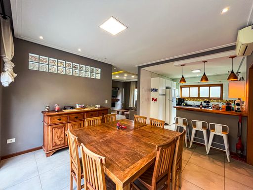 A casa foi projetada para proporcionar funcionalidade e bem-estar. Possui três quartos, incluindo uma suíte master aconchegante, além de uma sala ampla para dois ambientes que integra o espaço social de forma acolhedora. A cozinha conta com planejados e aquecimento na torneira, oferecendo praticidade e organização. Há também lavabo, área de serviço e um amplo quintal repleto de vegetação, ideal para quem aprecia ambientes arejados e ensolarados. Para momentos de lazer, o imóvel dispõe de uma área de convivência charmosa com fogareiro central, perfeita para recepcionar amigos e familiares, além de uma área gourmet completa com churrasqueira. A piscina, posicionada de forma harmoniosa ao lado do pergolado, complementa o clima relaxante da casa e transforma o ambiente externo em um verdadeiro refúgio particular. A garagem possui duas vagas cobertas, e o terreno totaliza 500 m², com 162 m² de área construída.