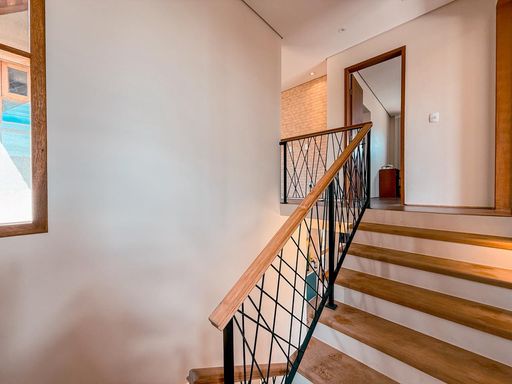 No pavimento superior há ainda uma sala íntima, ideal para um espaço de TV, leitura ou convivência familiar, além de 1 dormitório reversível, que pode ser utilizado como escritório, quarto de hóspedes ou sala de estudos, conforme a necessidade da família.