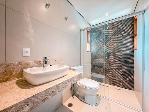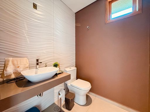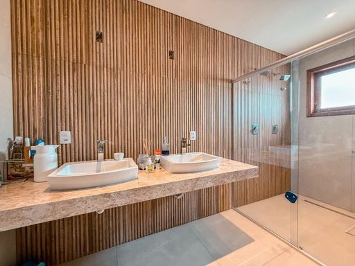Na área íntima, a casa possui 3 suítes avarandadas, garantindo excelente iluminação natural e ventilação. A suíte master se destaca pelo conforto, com closet, cuba dupla e dois chuveiros, criando um ambiente funcional e sofisticado para o dia a dia.