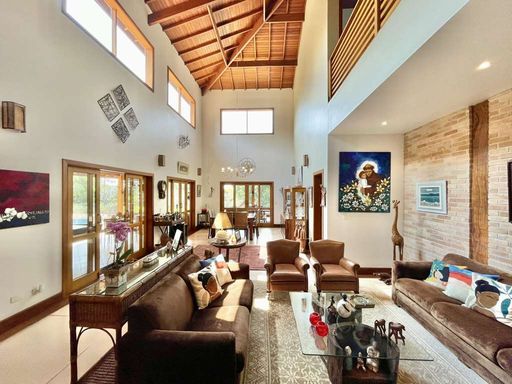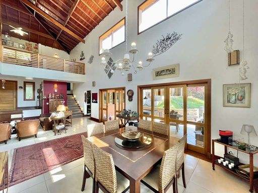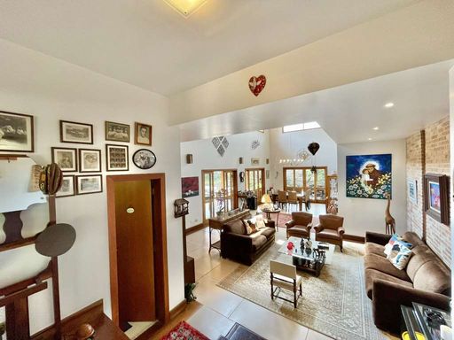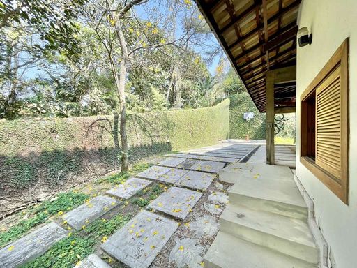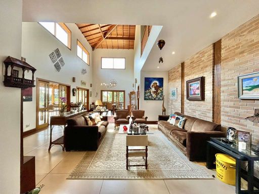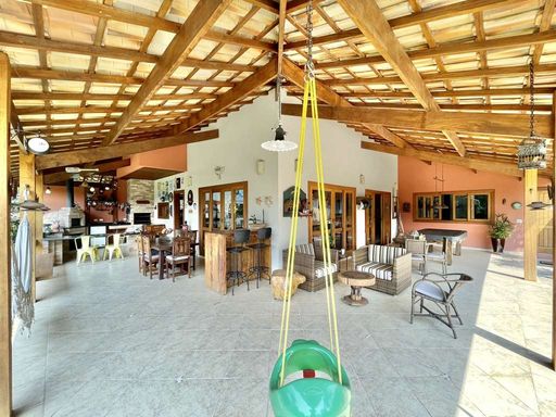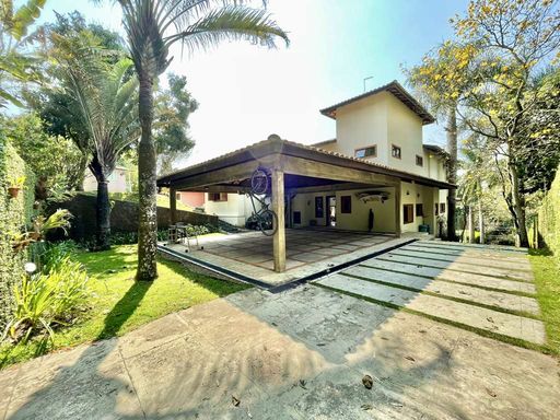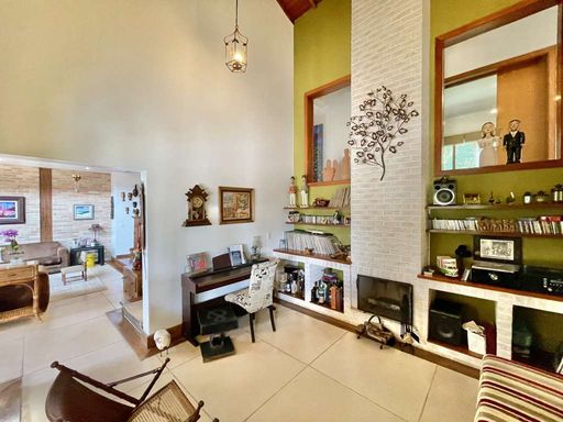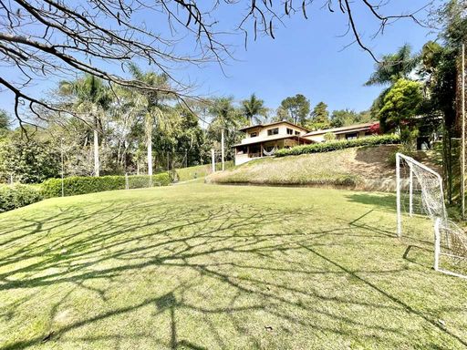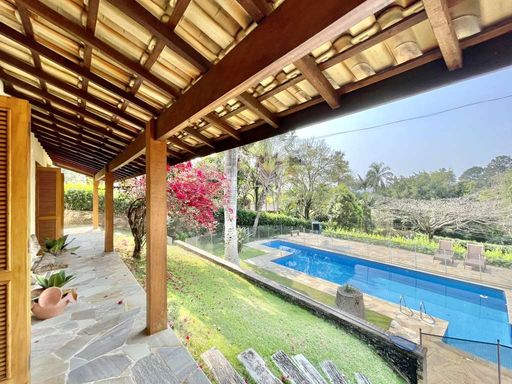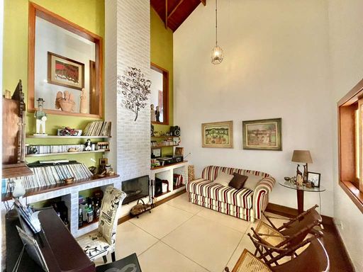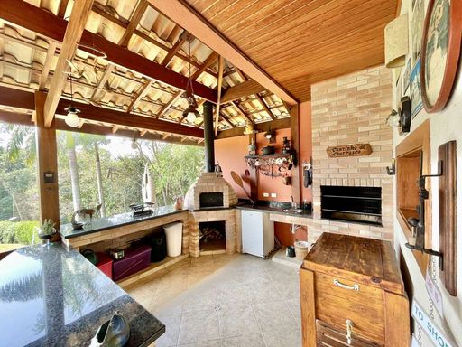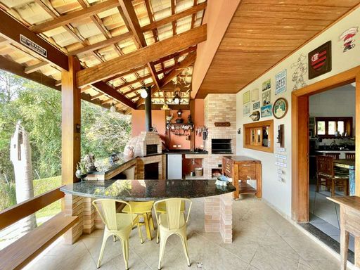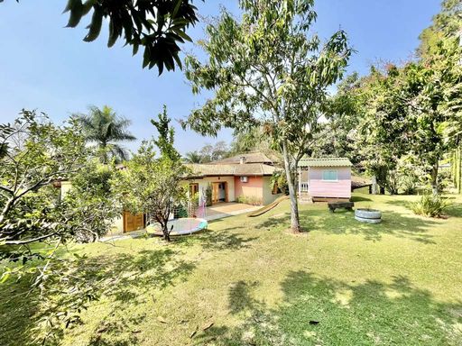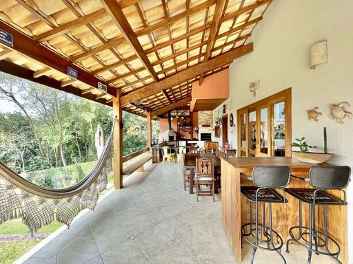 Casa em estilo de campo, toda avarandada, cercada de muito verde e com uma vista maravilhosa voltada para a natureza, garantindo privacidade, tranquilidade e qualidade de vida. Ensolarada, bem arejada e iluminada, a residência conta com ótimo acabamento e está localizada em frente a uma área de preservação permanente (APP) da Fazendinha, um dos pontos mais privilegiados da região. O jardim é um destaque à parte, com paisagismo formado, gramado amplo, campinho e até uma charmosa casa de criança com escorregador, criando um ambiente perfeito para famílias que desejam lazer em casa.