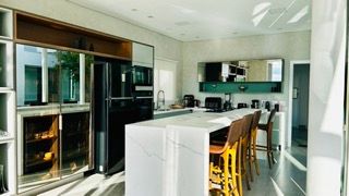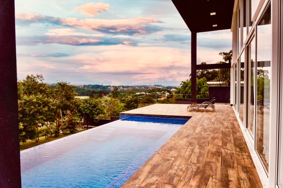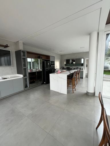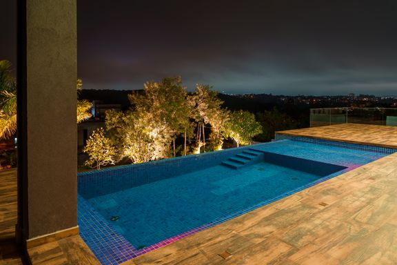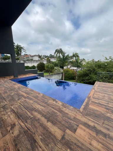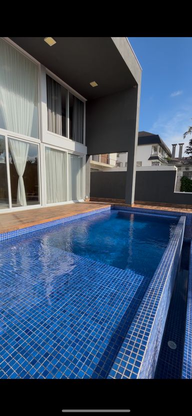 A casa dispõe de home theater, escritório e ambientes pensados para conforto e funcionalidade. Na área externa, o destaque é a piscina aquecida com borda infinita, perfeita para momentos de relaxamento, integrada a um espaço de lazer completo com área de festas, pátio e jardim com árvores frutíferas, criando um ambiente acolhedor e ideal para receber.