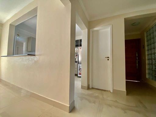 O living é amplo e bem iluminado, com salas de visita, estar, TV e jantar conectadas à varanda gourmet por meio de porta de vidro de correr que, ao ser aberta completamente, integra o interior ao quintal. A cozinha americana é equipada com armários planejados, pia em granito com cuba inox, cooktop, despensa e gabinetes sob medida. A área gourmet coberta é perfeita para receber, com bancada, armários, pia e churrasqueira, tudo voltado ao jardim com horta, pomar e uma piscina com ducha, ideal para momentos de lazer em família.