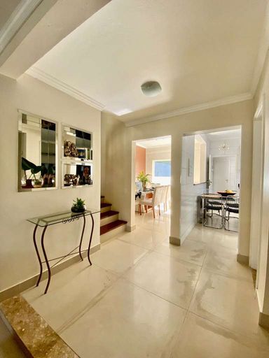Outros destaques incluem lavabo elegante, lareira, ampla varanda social, área de serviço funcional, dependência de empregada, entrada independente para garagem e lazer, e três vagas de garagem (uma coberta). A casa tem estrutura sólida com tijolos duplos, evitando infiltrações, louças e metais de qualidade, além de excelente padrão de acabamento com detalhes em madeira.