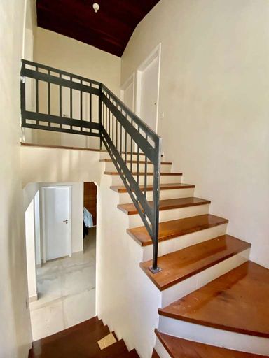 O pavimento superior conta com quatro dormitórios, sendo duas suítes com sacada e vista espetacular para a mata preservada. Todos os quartos têm armários planejados e piso laminado. Os banheiros são modernos, com pias de sobrepor, gabinetes, espelhos e box de vidro. A suíte master oferece conforto e privacidade com sacada voltada para o jardim da casa.