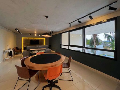 Esta casa contemporânea reúne integração, conforto e um acabamento impecável, posicionada ao lado do Parque Cemucan, no Km 25 da Raposo Tavares, em um dos cenários mais agradáveis da região. Cada ambiente foi planejado para oferecer praticidade e beleza, com móveis planejados em praticamente todos os cômodos e um conjunto harmonioso de portas e janelas em madeira, alumínio branco e preto, além de amplas superfícies de vidro que favorecem a luz natural. Os materiais escolhidos para o interior revelam cuidado e bom gosto: pisos que alternam porcelanato, cerâmica, revestimentos em madeira e cimento, todos emoldurados por detalhes em tijolos que reforçam a personalidade do projeto. Louças, metais, iluminação e trabalhos de gesso seguem um padrão de qualidade superior. O jardim já amadurecido, repleto de frutíferas como jabuticaba, acerola, laranja e diferentes tipos de limão, cria um ambiente acolhedor ao redor da residência.