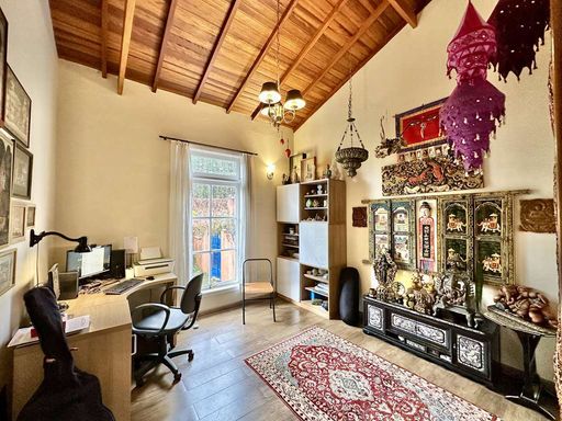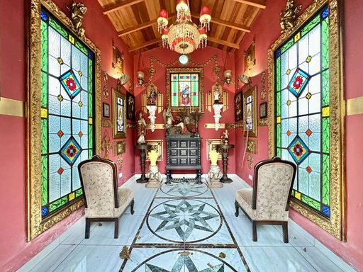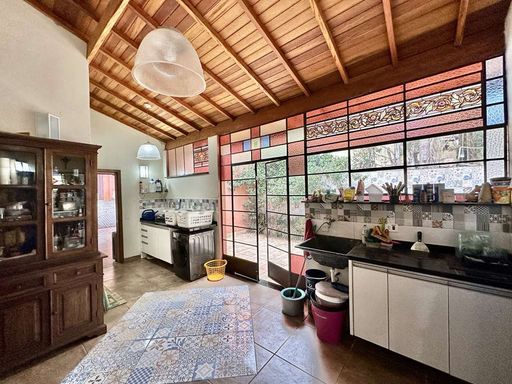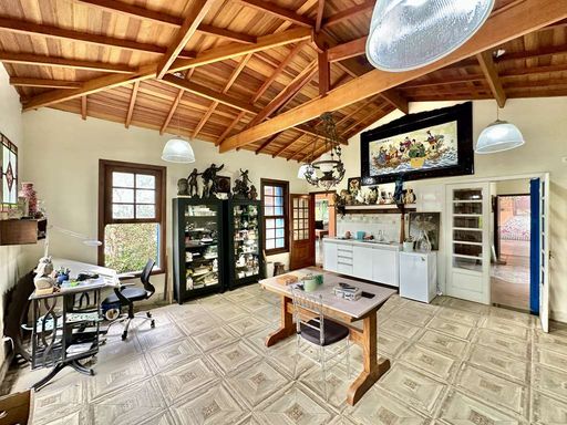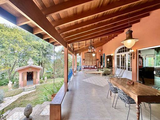 O imóvel ainda dispõe de um apartamento suíte independente, com varanda voltada para o jardim, cozinha e banheiro, ideal para hóspedes, caseiro ou até para o filho mais velho. Como diferencial, a propriedade possui uma capela decorada com vitrais e lustre de cristal, que acrescenta ainda mais exclusividade ao espaço.