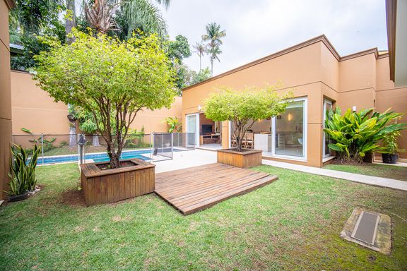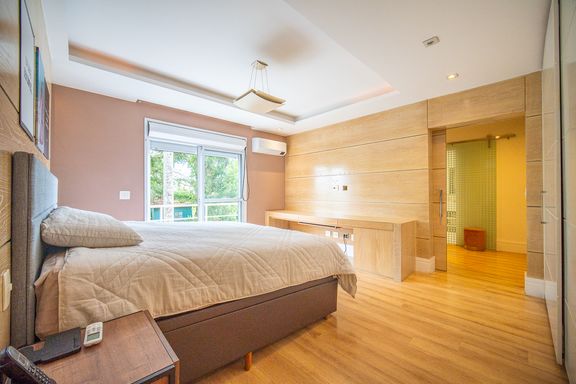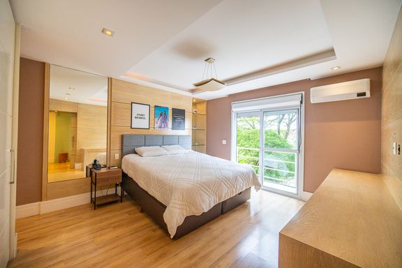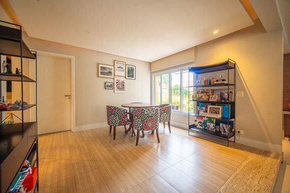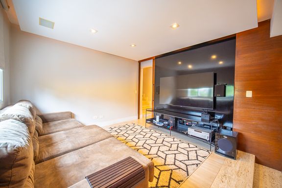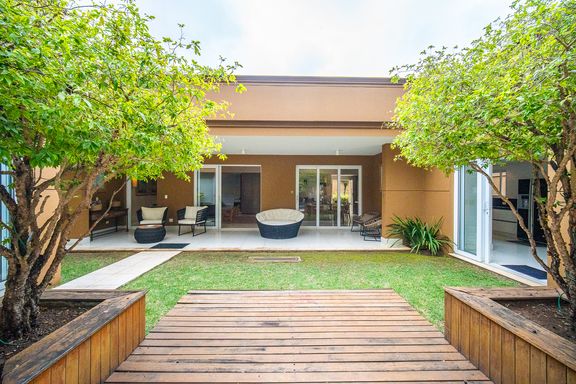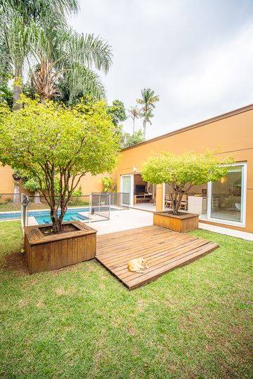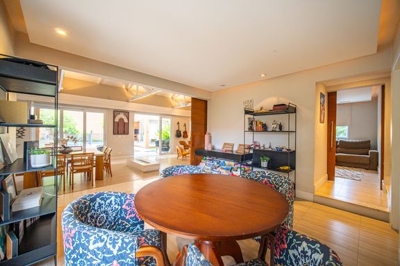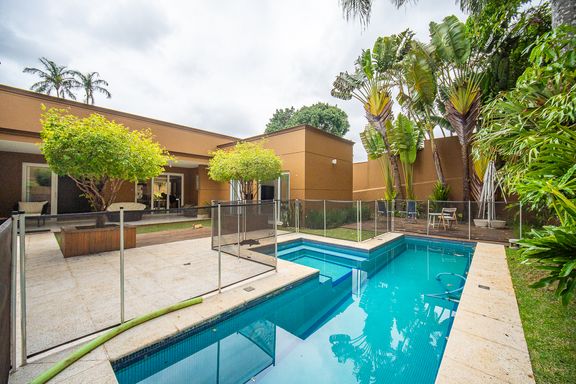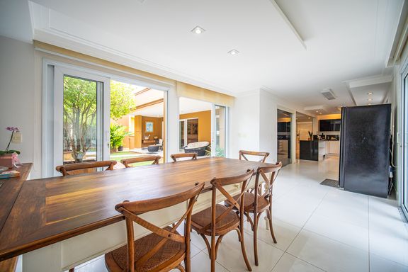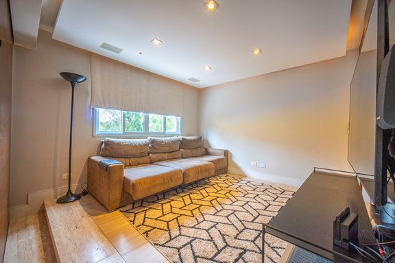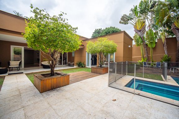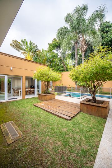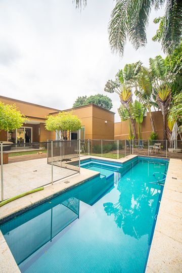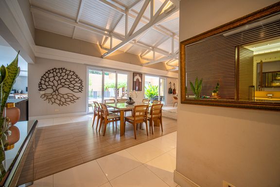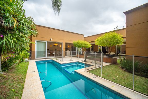 A área de lazer é completa e cuidadosamente planejada, com piscina aquecida com raia e hidromassagem, espaço gourmet com churrasqueira, salão de festas e home theater, ideal para receber familiares e amigos com conforto e privacidade. O espaço externo é um grande diferencial, com área ensolarada, lago de carpas, orquidário e até uma charmosa casa na árvore, criando um ambiente único de contato com a natureza. O imóvel conta ainda com acabamentos de alto padrão, ar-condicionado, adega, lavabo, área de serviço completa e 4 vagas de garagem.