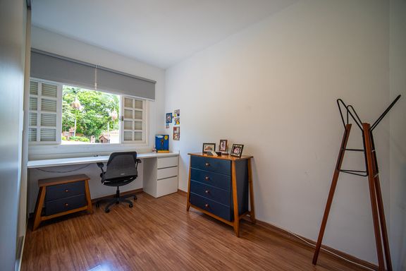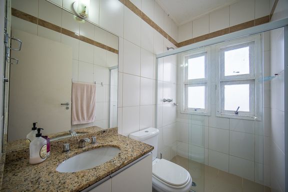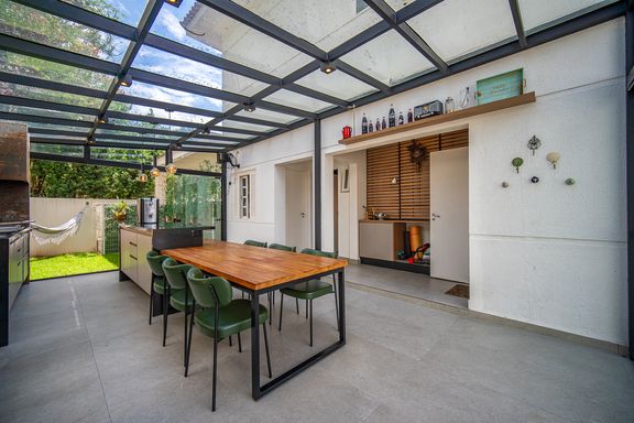 A área externa é um dos grandes destaques, com quintal agradável e espaço gourmet com churrasqueira, ideal para receber amigos e familiares em ocasiões especiais. A vista panorâmica complementa o cenário, proporcionando sensação de amplitude e contato com o verde. A garagem comporta quatro veículos, sendo duas vagas cobertas.