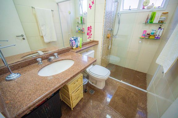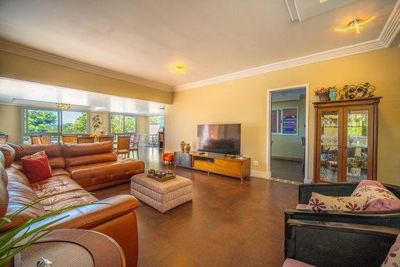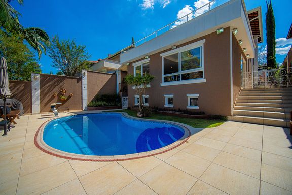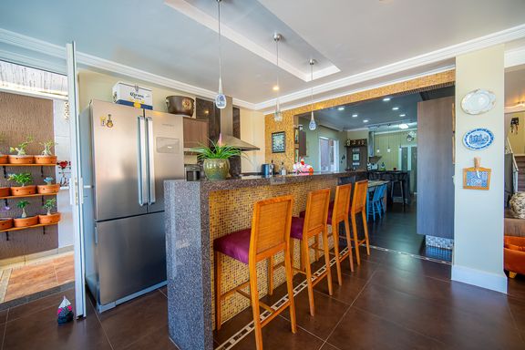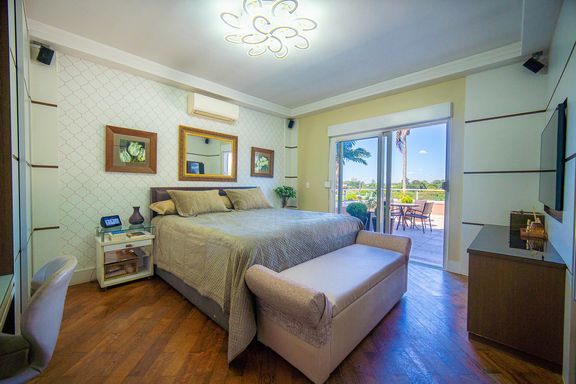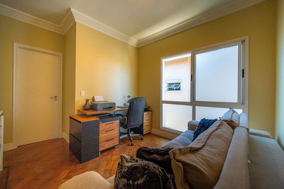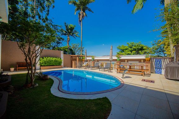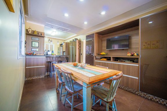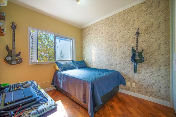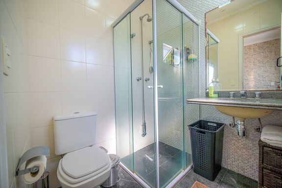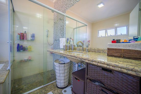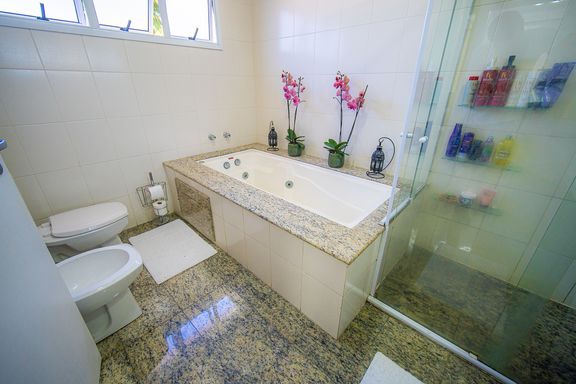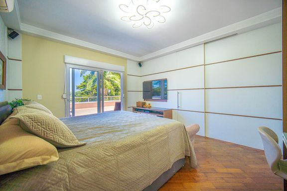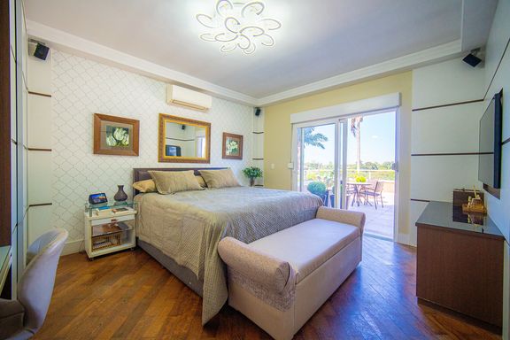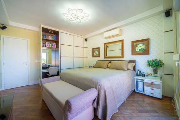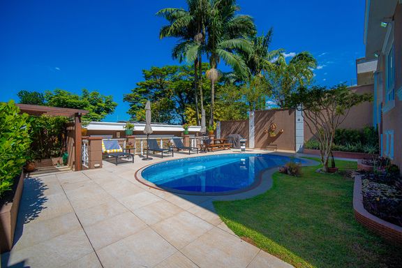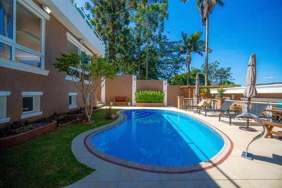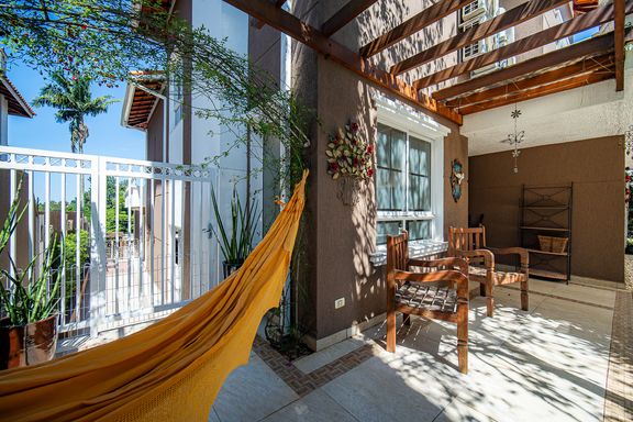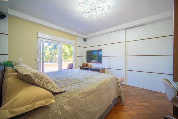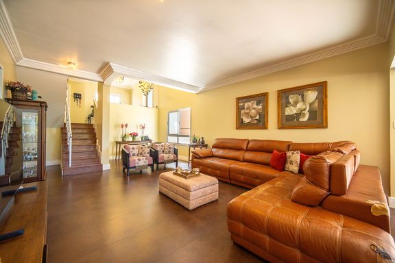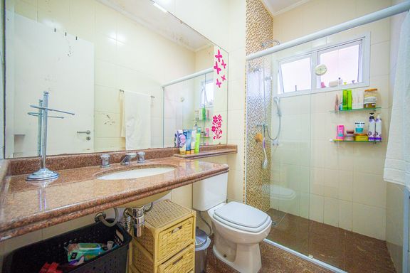 Com 385 m² de área privativa em um terreno de 614 m², o imóvel se destaca pela excelente distribuição dos ambientes e pelo padrão construtivo. São quatro dormitórios, todos suítes amplas, que garantem privacidade e conforto para toda a família. A suíte master é um dos grandes diferenciais da casa, contando com closet e banheiro equipado com banheira de hidromassagem, ideal para momentos de relaxamento. Ao todo, são seis banheiros bem distribuídos, atendendo com praticidade todos os pavimentos da residência.