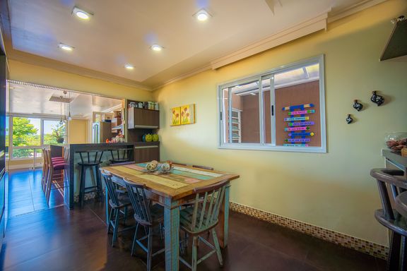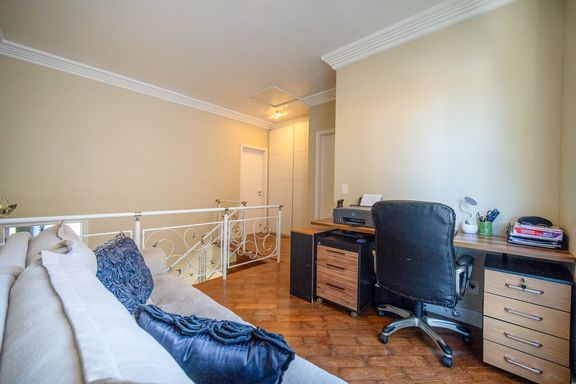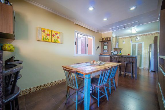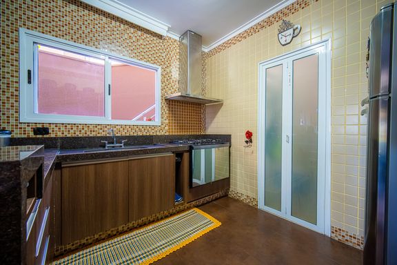 A cozinha conta com armários planejados, bancada em formato L e excelente aproveitamento de espaço, oferecendo praticidade e organização. No terceiro pavimento, o imóvel dispõe de um family room aconchegante e duas suítes adicionais, ampliando as possibilidades de uso da casa, seja para acomodar visitantes, criar um espaço de convivência mais reservado ou atender famílias maiores com total conforto.