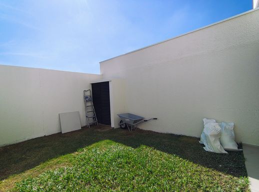 Seguindo para a parte externa, a casa conta com um quintal gramado e ensolarado, ideal para quem deseja um espaço ao ar livre para relaxar, cultivar um pequeno jardim, montar um espaço pet ou até instalar uma área gourmet. O ambiente externo é perfeito para aproveitar dias de sol e criar um refúgio particular no conforto do lar.