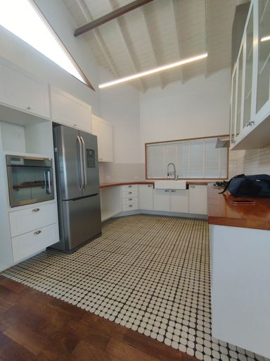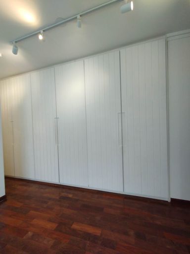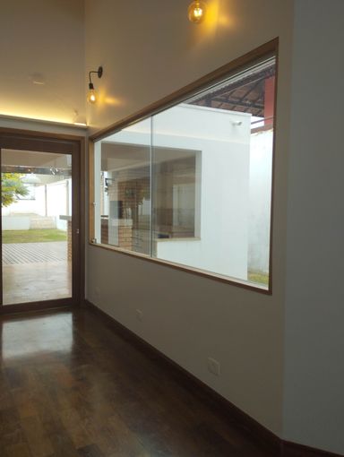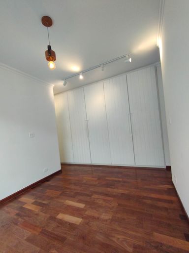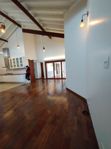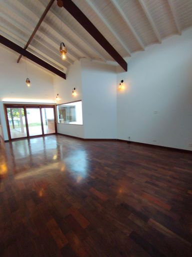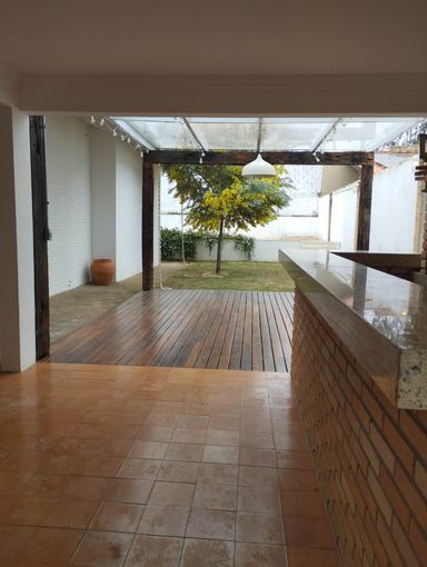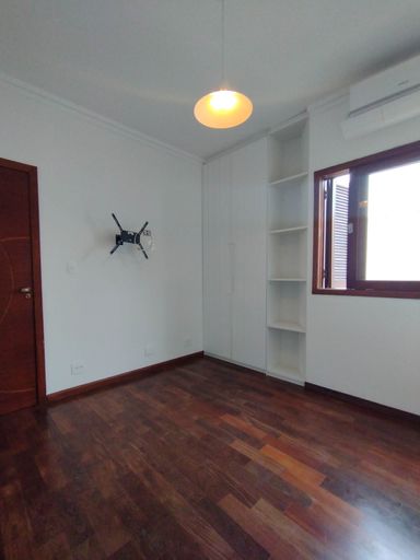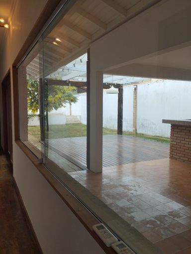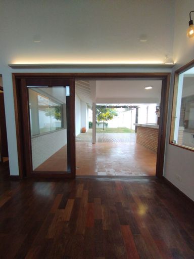 A residência conta com 2 dormitórios, ambos com armários planejados, além de 3 banheiros bem distribuídos. A sala é grande e arejada, com piso de madeira, portas e janelas de vidro que trazem muita iluminação natural e integração com os demais ambientes.