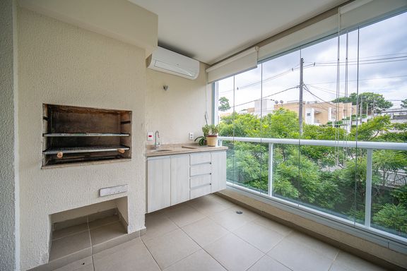 O apartamento dispõe de ar condicionado, churrasqueira para momentos de lazer, 2 vagas de garagem e está inserido em condomínio com segurança, sendo uma ótima opção para quem busca conforto, praticidade e boa localização em um bairro valorizado.