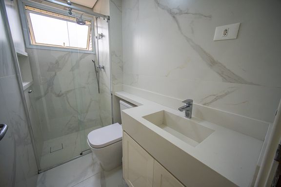 Este apartamento possui area total de 107,06 m², com planta bem distribuída e ambientes confortáveis. São 3 quartos, sendo 1 suíte, além de banheiro social e banheiro de apoio, atendendo perfeitamente às necessidades da família.