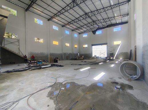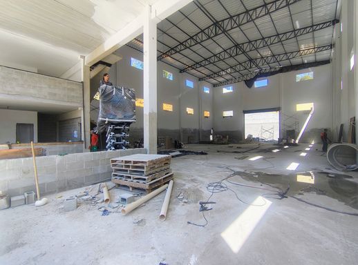 O galpão conta com amplo espaço interno, ideal para operações logísticas, armazenamento ou pequenas indústrias.