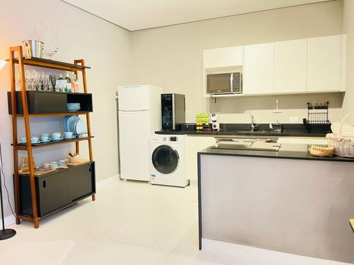 O loft possui ainda um garden, um espaço privativo ao ar livre que oferece um toque de natureza e tranquilidade, perfeito para momentos de relaxamento ou pequenas reuniões sociais. Esta área externa é ideal para cultivar plantas, criar um ambiente de lazer ou simplesmente desfrutar de um espaço ao ar livre com total privacidade.