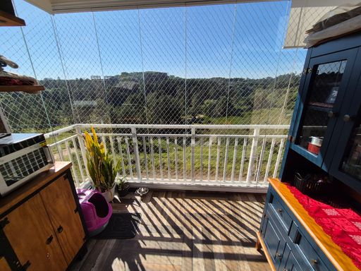 A cozinha é conjugada à sala, trazendo praticidade no dia a dia e melhor aproveitamento do espaço. A ampla varanda, com portas camarão em vidro Blindex, valoriza a iluminação natural e oferece uma agradável vista para a natureza preservada.