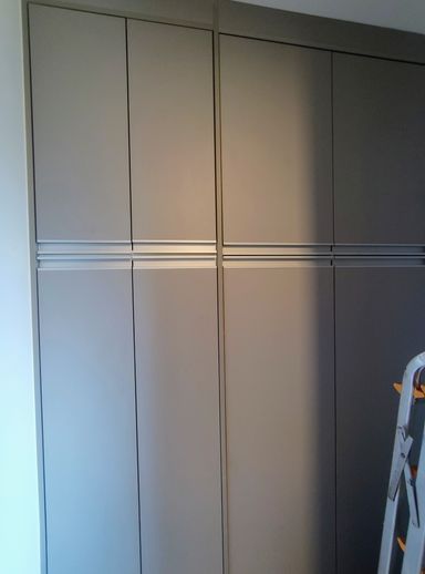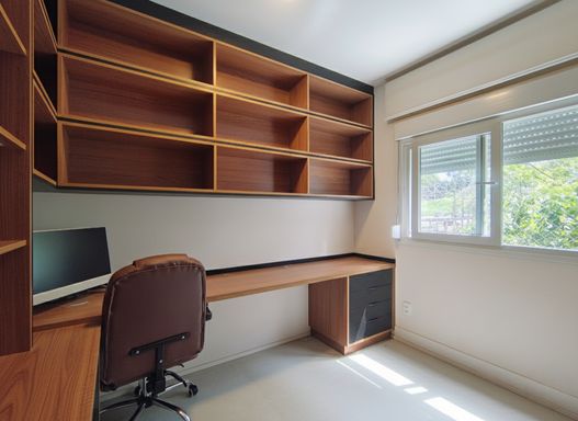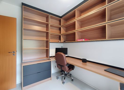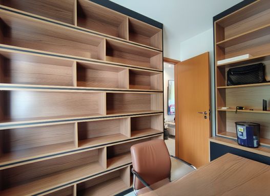 O apartamento dispõem de 1 escritorio repleto de armarios e uma estação de trabalho.