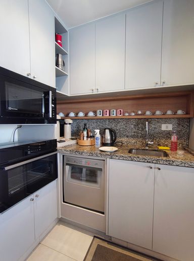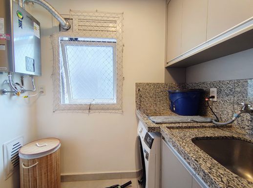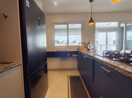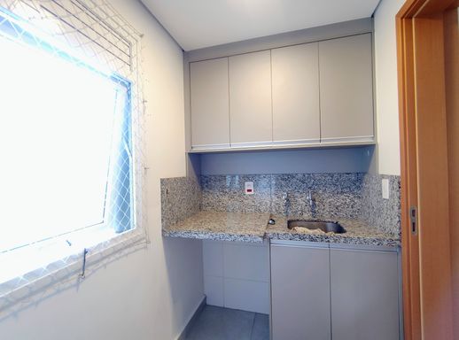 A cozinha, também integrada à sala de jantar, é repleta de armários planejados, proporcionando praticidade e organização. Ao lado, a área de serviços com maquina de lavar e secar conta com uma despensa, facilitando o armazenamento e o uso dos espaços. e uma linda varanda com armarios , fechamento em vidro e persinas.