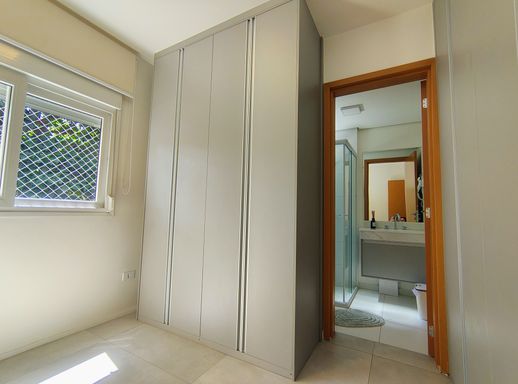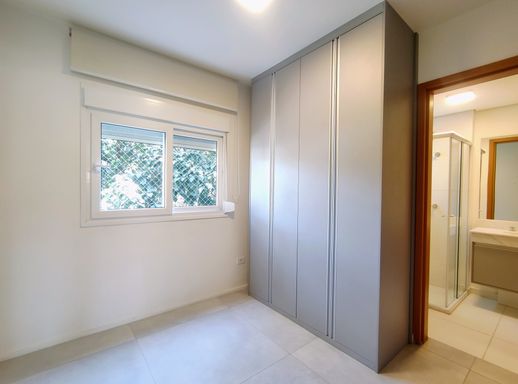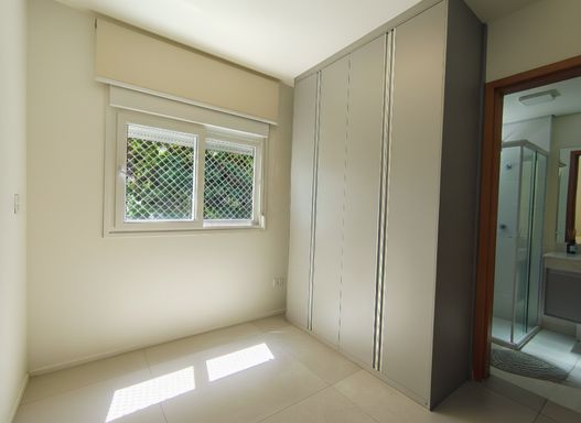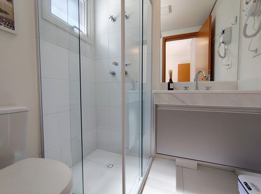 A área íntima oferece 2 dormitórios, sendo 2 suítes, ambas com armários A suíte master é um destaque, equipada com armário planejado e ar-condicionado e janelas anti-ruido, garantindo conforto e elegância. Além disso, o apartamento possui mais um banheiro atendendo a parte social.