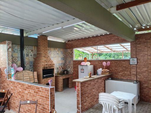 Quiosque gourmet com churrasqueira: Perfeito para confraternizações.