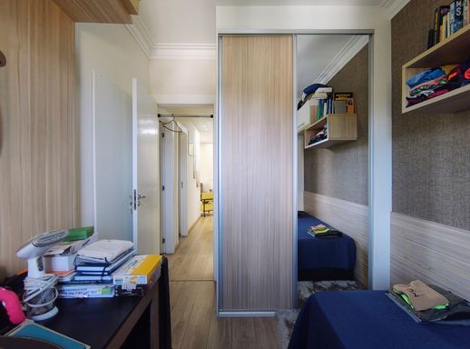 Este apartamento dispõe de três dormitórios, sendo que um deles foi inteligentemente transformado em closet, criando um espaço ideal para armazenamento com elegância. O segundo dormitório conta com móveis planejados, perfeito para ser utilizado como quarto de solteiro ou home office. A suíte principal também está equipada com armários planejados, oferecendo conforto, privacidade e organização.
