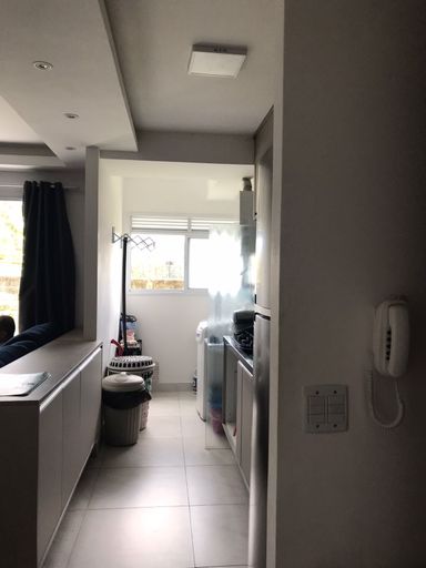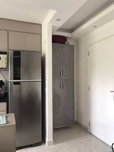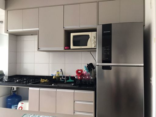 A cozinha é funcional e equipada com móveis planejados que otimizam o espaço e agregam organização ao ambiente. Ao lado, a área de serviço oferece praticidade no dia a dia.