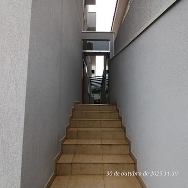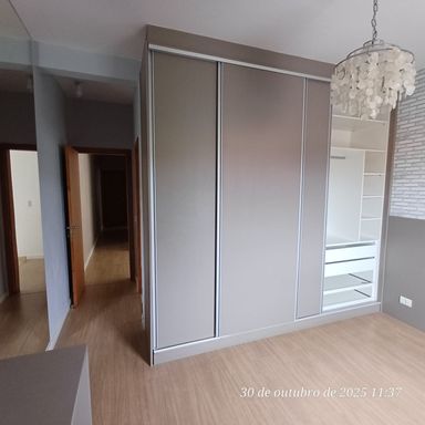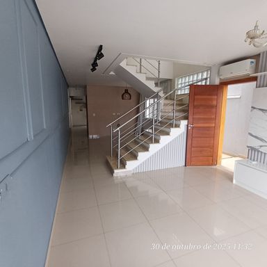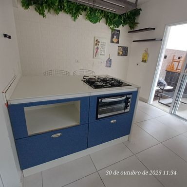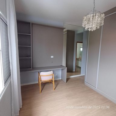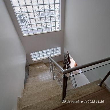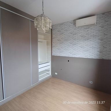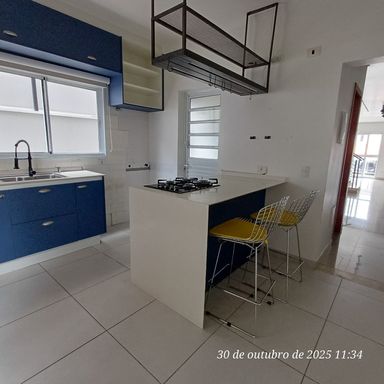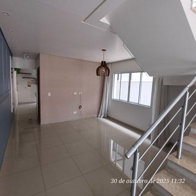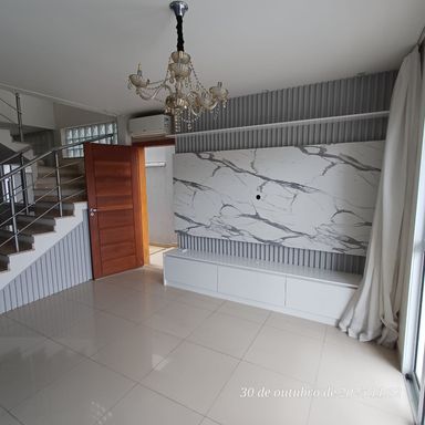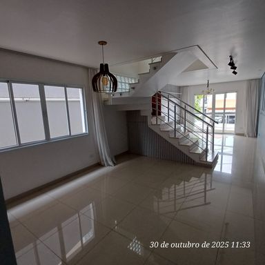 No piso térreo, ampla sala de estar com painel, cozinha planejada, com armários sob medida e ótimo aproveitamento de espaço. No pavimento superior, três dormitórios aconchegantes, todos com móveis planejados, além de dois banheiros com acabamentos modernos.