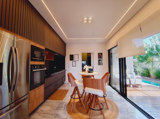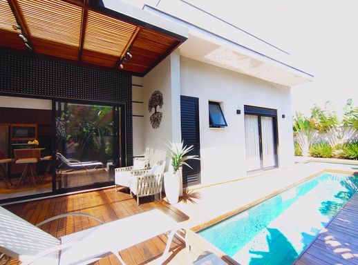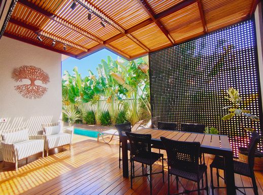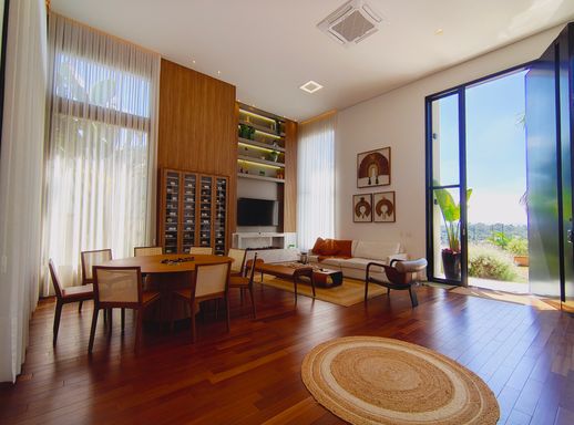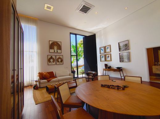 Esta linda casa térrea, com pé-direito alto, encanta pelo bom gosto, ambientes integrados e excelente iluminação natural. Um imóvel claro, arejado e totalmente mobiliado (porteira fechada), pensado para oferecer praticidade e bem-estar em todos os detalhes.