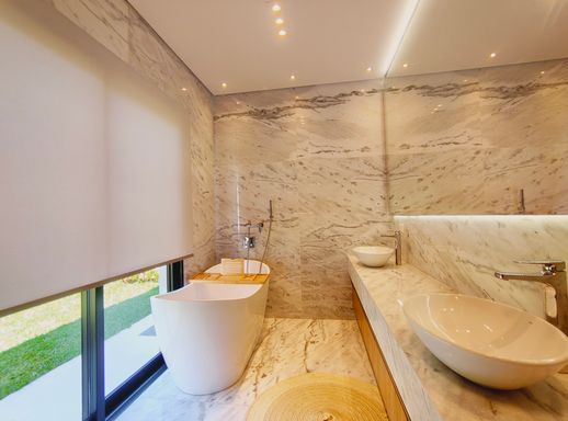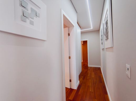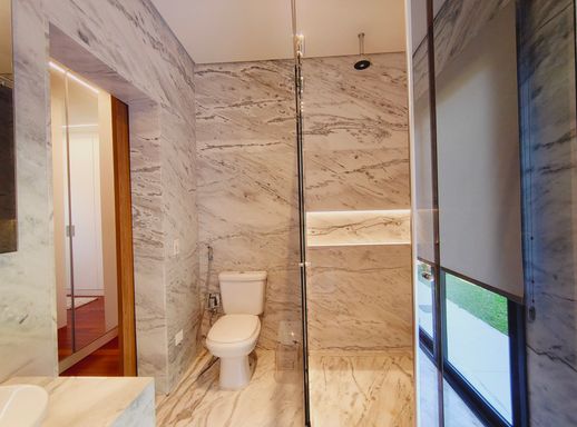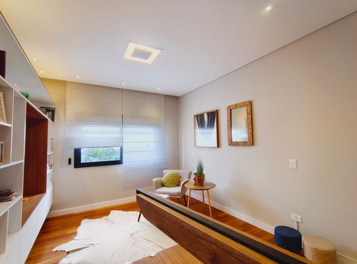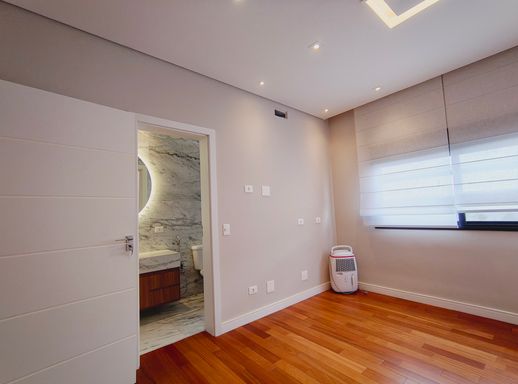 O imóvel possui ar-condicionado na sala e na suíte master, além de infraestrutura pronta para instalação nas demais suítes. O sistema de aquecimento a gás atende toda a residência, proporcionando conforto térmico com eficiência.