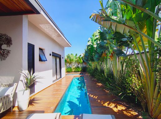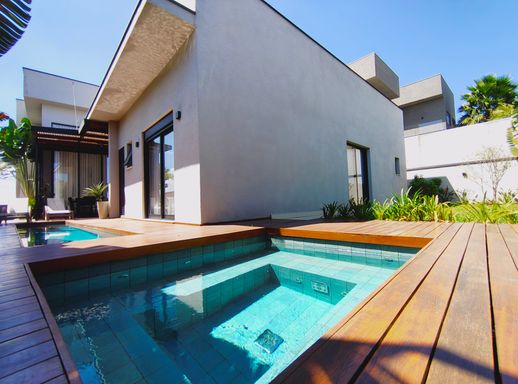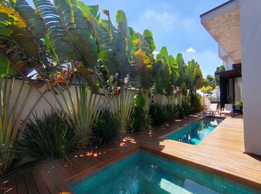 Na área externa, o destaque fica por conta da piscina com hidromassagem, ideal para momentos de lazer e relaxamento, além de um lindo paisagismo que harmoniza todo o espaço.