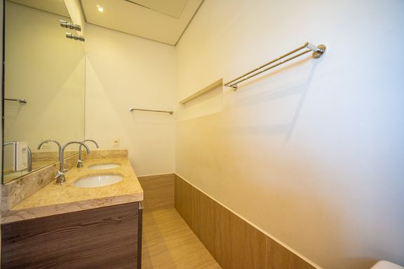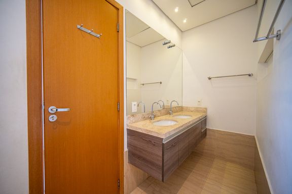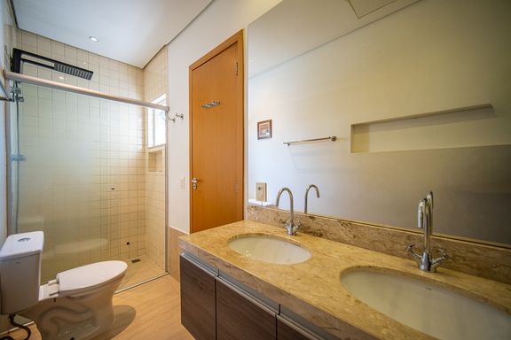 Os banheiros são bem distribuídos atendendo perfeitamente às áreas íntima e social da casa