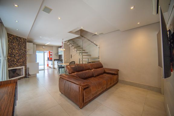 A casa é um sobrado isolado com arquitetura moderna oferecendo conforto privacidade e ótima distribuição dos ambientes A área total é de 140 m2 com área privativa de 105 m2 muito bem aproveitada