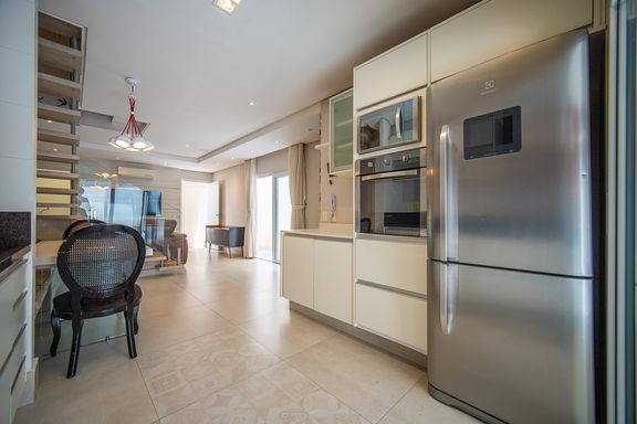 O imóvel será entregue mobiliado contando com sofá mesa com banco buffet adega geladeira forno elétrico microondas cooktop coifa lava louça máquina de lavar roupas mesa externa com bancos e cadeiras cama de casal queen duas camas de solteiro sofá cama quatro televisores luminárias internas e externas e dois aparelhos de ar condicionado