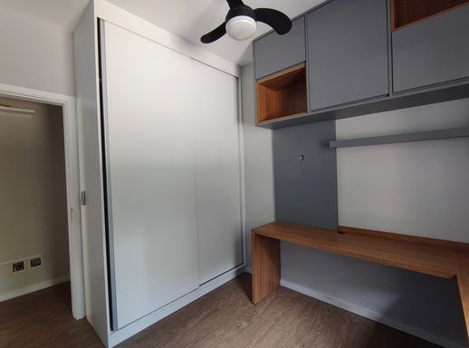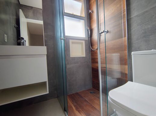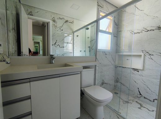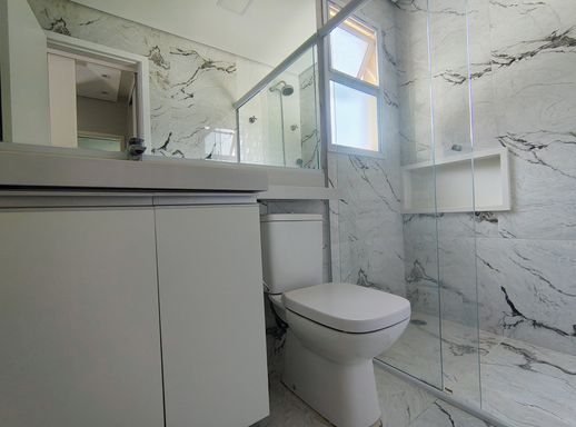 O imóvel dispõe de três dormitórios, sendo uma suíte confortável e bem iluminada, com armários planejados e ar-condicionado. Os demais dormitórios também contam com ótimos armários planejados e um deles com ar condicionado. Os banheiros possuem acabamentos modernos e box instalados, unindo funcionalidade e bom gosto.