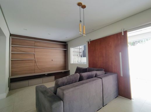A sala é ampla, integrada e recebe excelente iluminação natural, criando um ambiente acolhedor e agradável para momentos de convivência.