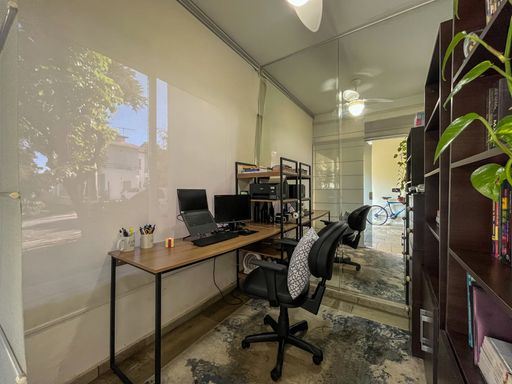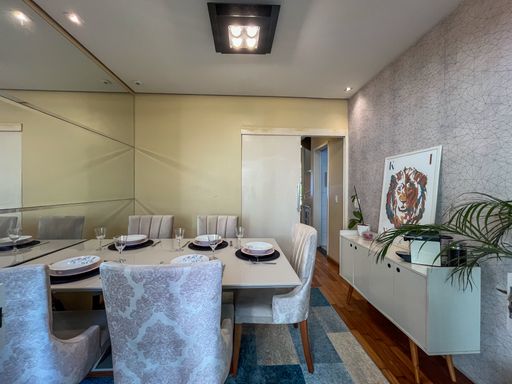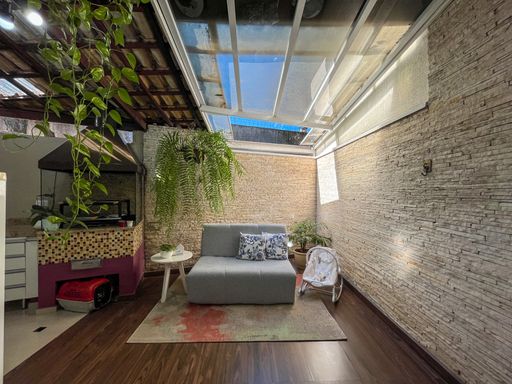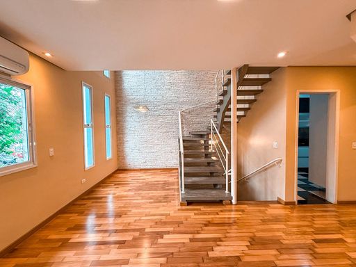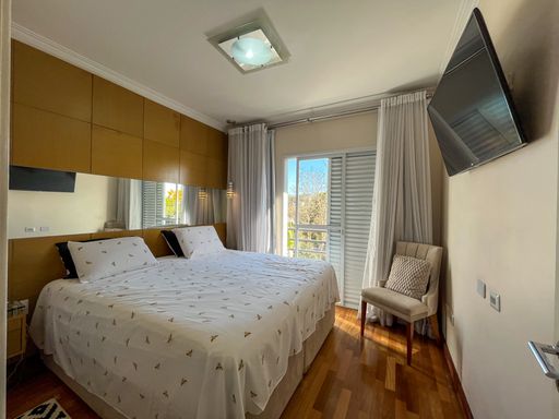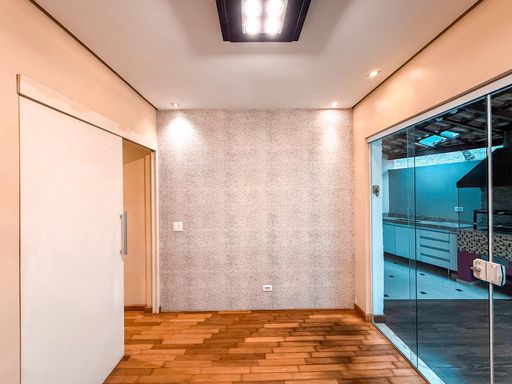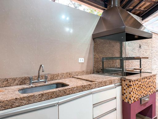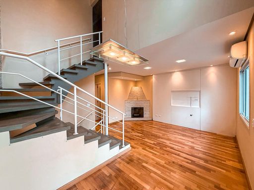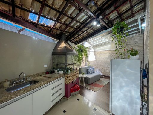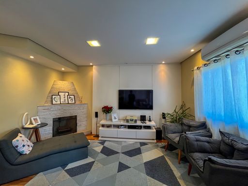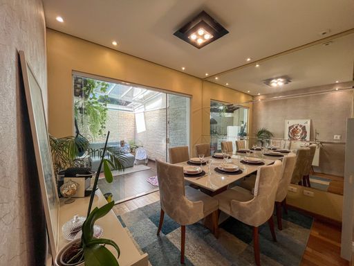 O imóvel oferece uma composição arquitetônica acolhedora e bem distribuída, começando por uma sala de estar com lareira, ar-condicionado e pé-direito duplo, que proporciona amplitude e conforto térmico em todas as estações. A sala de jantar integra-se harmoniosamente aos ambientes e se conecta à cozinha planejada, que traz funcionalidade e organização ao espaço. O lavabo acrescenta comodidade às visitas, enquanto o quintal com área gourmet cria o cenário perfeito para momentos de descontração com amigos e família. Para quem trabalha em home office, o escritório oferece privacidade e tranquilidade. A área íntima inclui três quartos, sendo duas suítes climatizadas, que garantem conforto extra e bem-estar. O imóvel possui ainda três vagas de garagem, área de terreno de 155m² e 157m² de área construída, combinando aproveitamento inteligente e conforto.