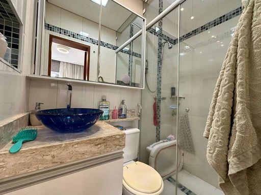 A garagem possui espaço para duas vagas descobertas, e o condomínio New Village oferece uma infraestrutura completa. Com portaria 24 horas e monitoramento por câmeras, a segurança é garantida. O espaço conta ainda com academia, piscina adulto e infantil, quadra poliesportiva, salão de festas, playground, salão de jogos, mini mercado, espaço pet, brinquedoteca, espaço gourmet com churrasqueira, vagas para visitantes, além de uma área verde e bosque.