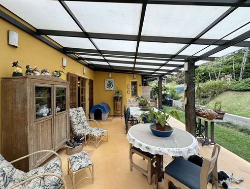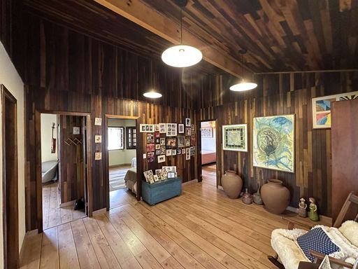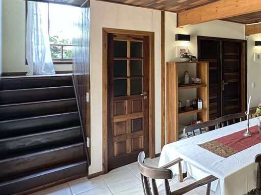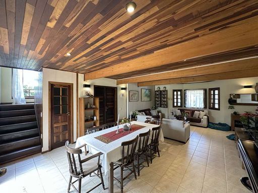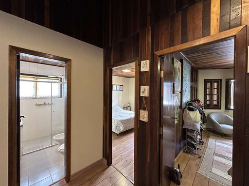 A construção é mista, em alvenaria e madeira de lei (Imbuia), com acabamentos que valorizam o estilo rústico, como pisos em cimento, tábuas largas e cerâmica. Portas e janelas em madeira e vidro com venezianas, além de louças e metais de qualidade. O imóvel é repleto de armários.