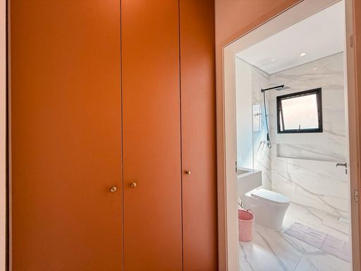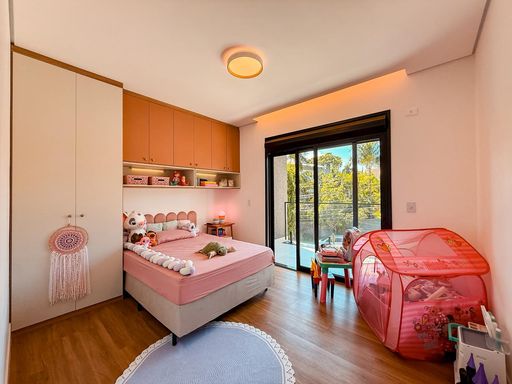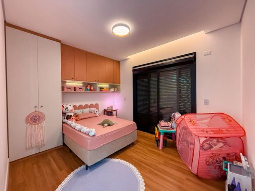São 3 suítes, sendo 2 com varanda, garantindo excelente iluminação natural e ventilação. A suíte master se destaca com closet, cuba dupla e ducha dupla, proporcionando mais conforto e praticidade no dia a dia. Todos os dormitórios contam com pontos para instalação de ar-condicionado.