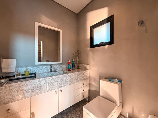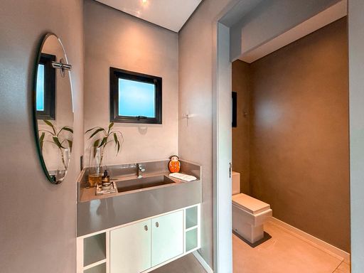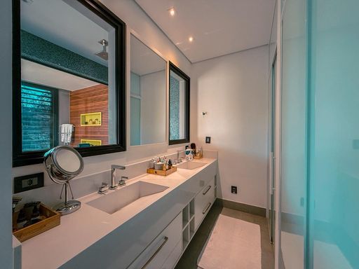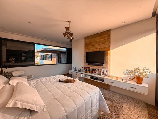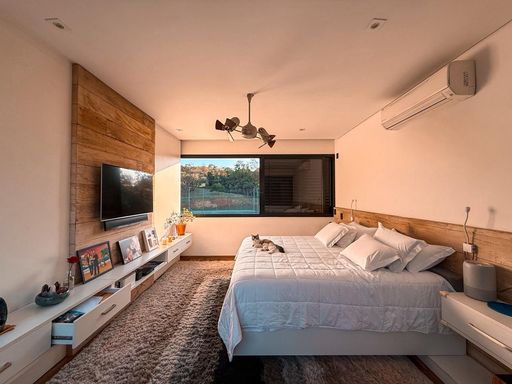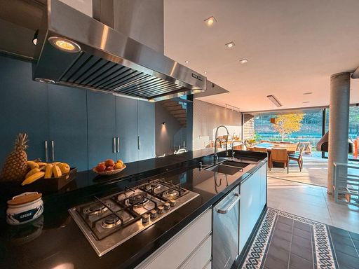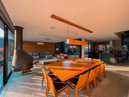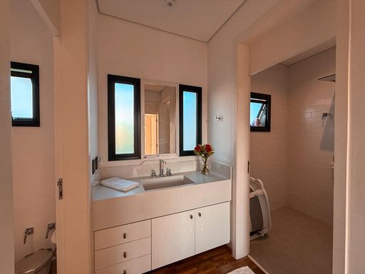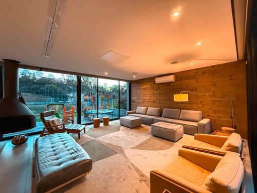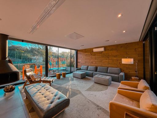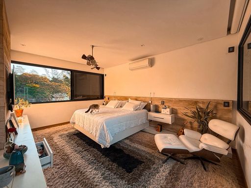 Esta casa à venda em condomínio fechado se destaca pelo alto padrão, pela infraestrutura de clube e por oferecer segurança, conforto e praticidade em uma região estratégica, próxima a escolas, supermercados, padarias, farmácias, academias e todo o comércio da região, além de proporcionar acesso rápido tanto para Alphaville quanto para São Paulo. O imóvel foi planejado para oferecer bem-estar em todos os detalhes, com ambientes amplos, climatizados e acabamentos de qualidade. A área social conta com salas integradas, incluindo sala de estar com lareira, sala de jantar e sala de almoço, todas pensadas para receber com conforto e criar um ambiente acolhedor. A cozinha possui armários planejados e se conecta facilmente aos demais espaços. Há ainda uma sala multiuso no térreo, com lavabo de apoio, ideal para escritório, brinquedoteca ou sala íntima. No pavimento superior, estão os quatro quartos, com destaque para a suíte senhor e senhora, que oferece total privacidade e conta com dois closets e banheira, garantindo um espaço exclusivo para relaxamento. Todos os ambientes da casa são climatizados, proporcionando conforto térmico durante todo o ano.