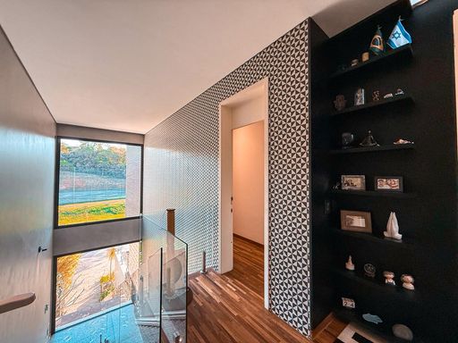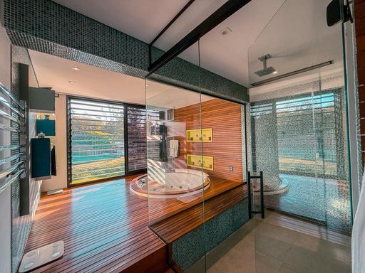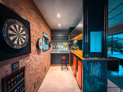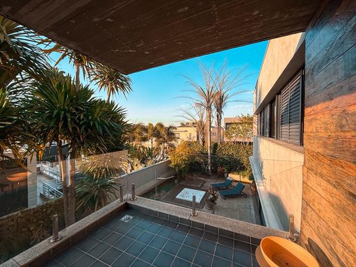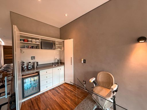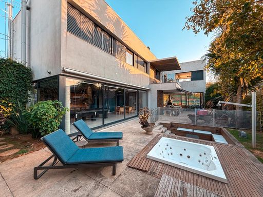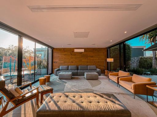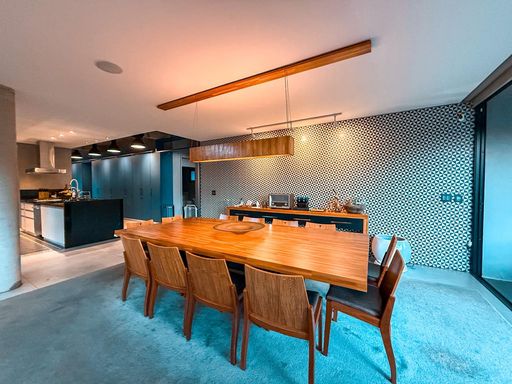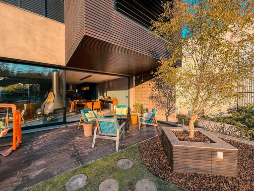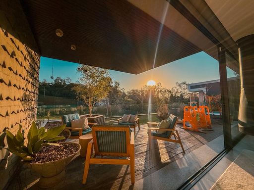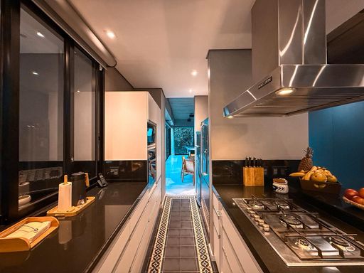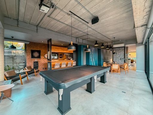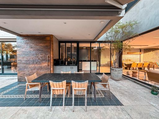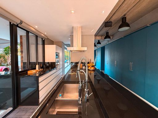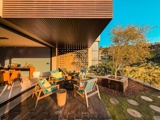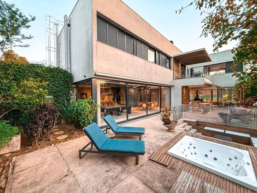 A área de lazer privativa traz o aconchego e praticidade que uma rotina moderna exige, reunindo espaço gourmet com churrasqueira, jacuzzi e um amplo quintal que permite vivenciar momentos de descanso ou confraternização com amigos e familiares. A casa também possui salão de festas com lounge bar, academia equipada, lavanderias independentes e suíte de serviço, atendendo plenamente às demandas de quem busca funcionalidade sem abrir mão de conforto. A garagem comporta até nove veículos, sendo seis vagas cobertas, o que agrega praticidade ao dia a dia.