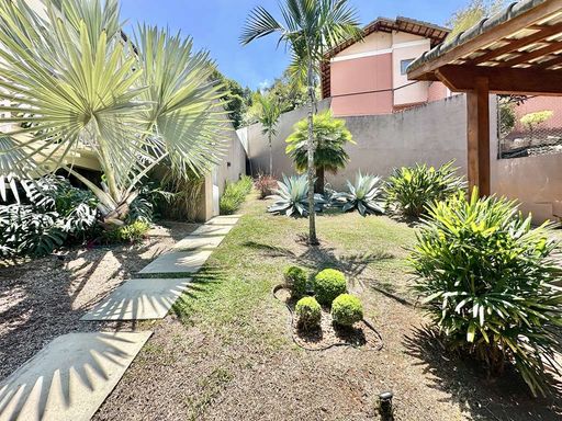 O imóvel possui armários planejados, portas e janelas em alumínio branco e vidro, com projeto de gesso e iluminação que valorizam os ambientes. Os pisos são em porcelanato, com porcelanato rústico antiderrapante na área externa e garagem, garantindo segurança e estilo. O jardim tem paisagismo formado, complementando a beleza da propriedade.