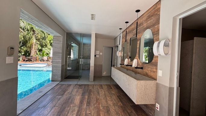 A piscina, sauna, quadra de tênis, quadra poliesportiva, academia, salão de jogos, salão de festas e brinquedoteca . Dois quiosques com churrasqueira e forno de pizza proporcionam momentos de descontração, enquanto a política pet-friendly reflete a preocupação com a felicidade de toda a família, incluindo os animais de estimação.Portaria 24 horas e sistema de monitoramento, garantindo um ambiente seguro e protegido.