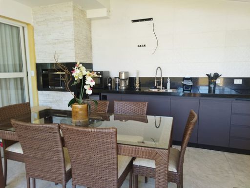 O imóvel foi planejado para proporcionar conforto, funcionalidade e qualidade de vida. São três dormitórios, sendo dois com guarda-roupas planejados e uma suíte equipada com ar-condicionado, garantindo bem-estar em todas as estações. A casa conta ainda com um escritório ideal para home office, um sótão versátil que pode ser utilizado como espaço multifuncional ou depósito, além de sala ampla e aconchegante com ar-condicionado e lareira, perfeita para momentos de descanso. A cozinha é moderna e completa, equipada com fogão de indução, torneira com água quente e móveis planejados, integrada à área de serviço que conta com máquina de secar roupas. A varanda gourmet coberta é um dos grandes destaques, totalmente mobiliada, com churrasqueira, fogão de indução, cervejeira e torneira com água quente, criando o ambiente ideal para receber amigos e familiares. O imóvel dispõe ainda de dois banheiros, lavabo e garagem para dois carros.