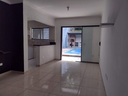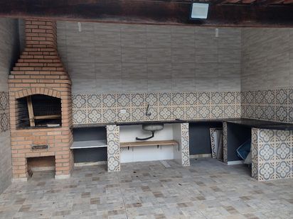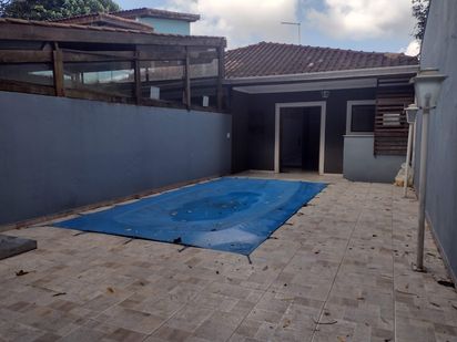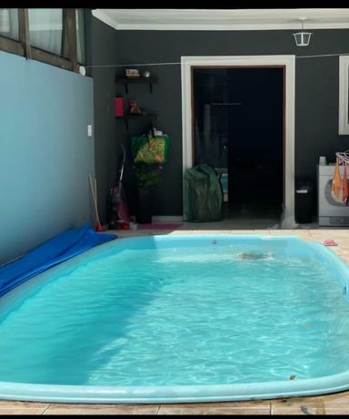 O quintal é um dos pontos altos desta casa, oferecendo uma área de lazer completa. A piscina proporciona refrescância e diversão nos dias mais quentes, enquanto a área gourmet com churrasqueira, pia e balcão suporte é perfeita para eventos sociais e momentos de descontração ao ar livre.